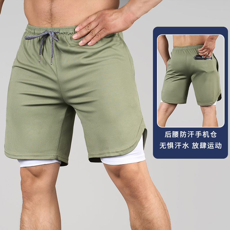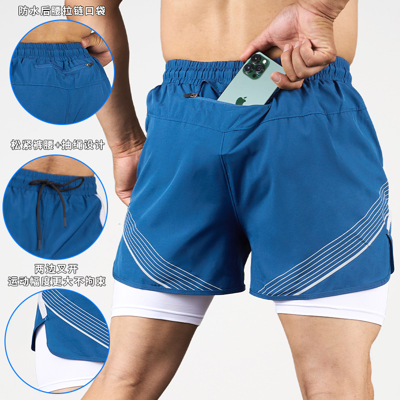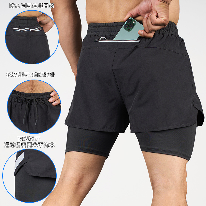 スポーツショーツ メンズ 夏 ランニング トレーニング アイスシルク 速乾パンツ マラソン裏地 フェイクツーピース 通気性 3点パンツ トレンド