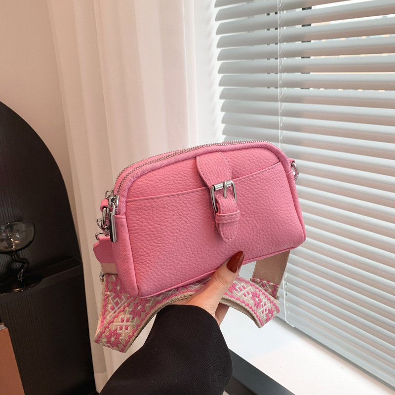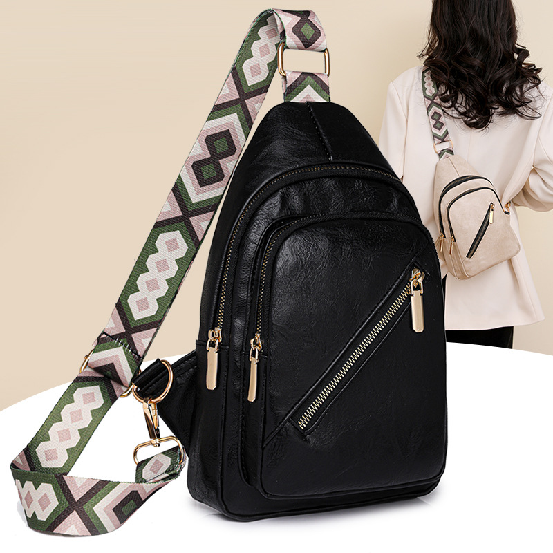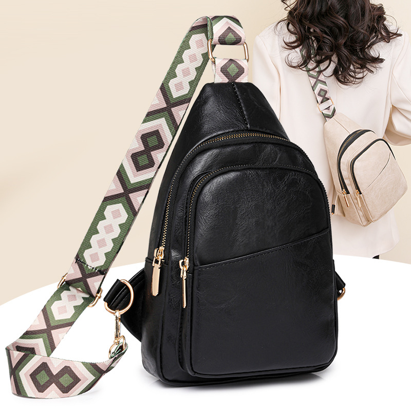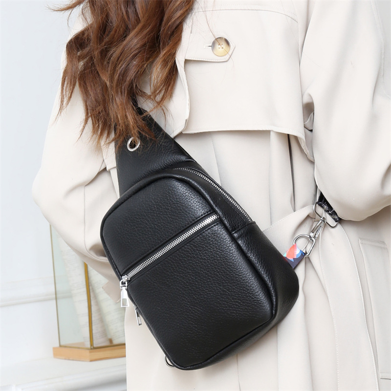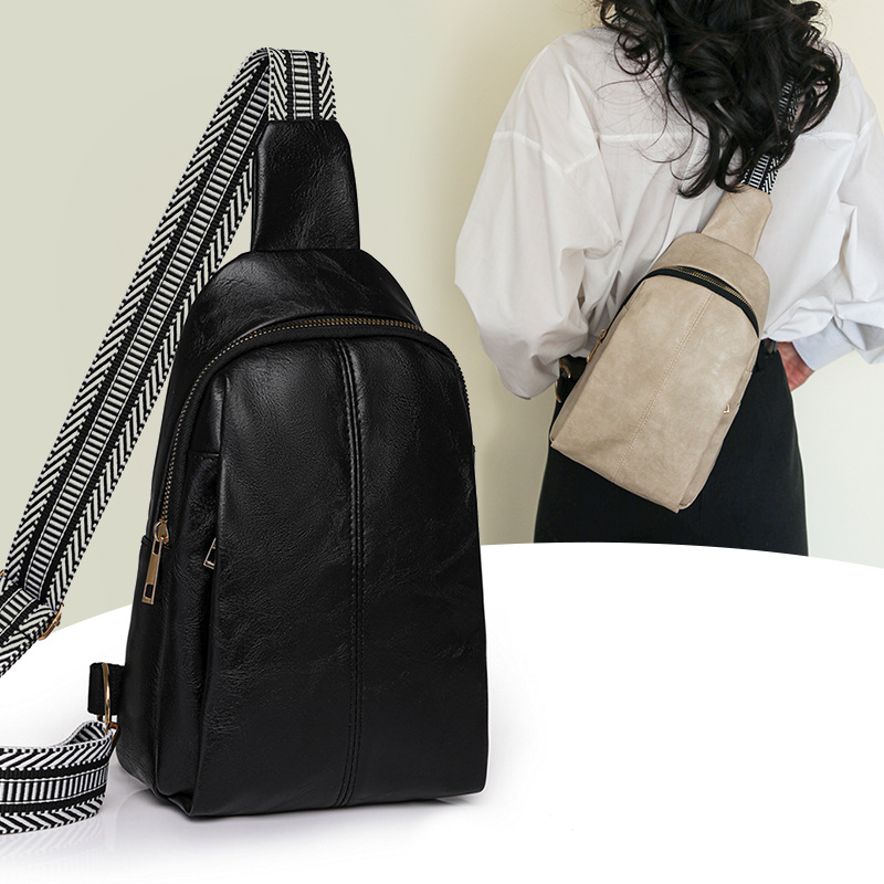 2024クロスボーダーの新型pu皮さんの胸のカバンはシンプルで、広い肩のベルトを重ねて、斜めにカバンを掛けます。