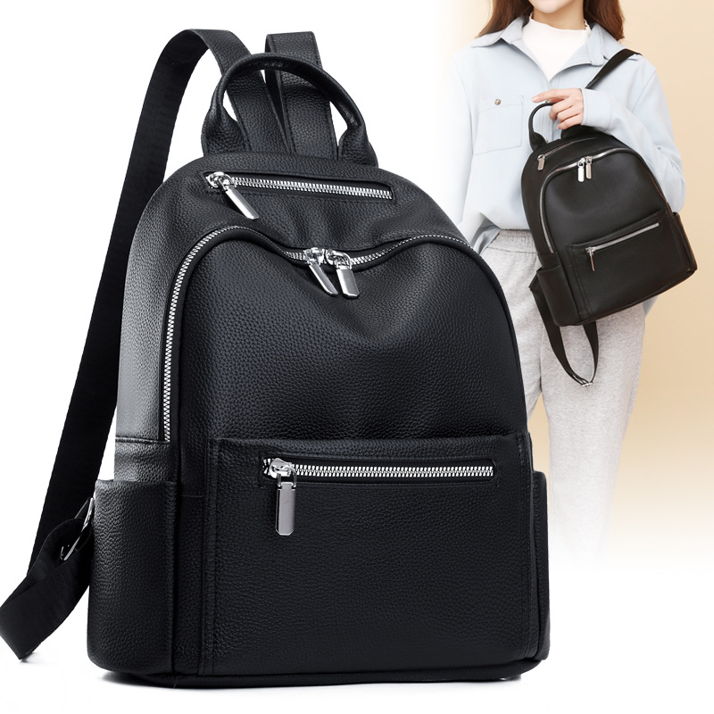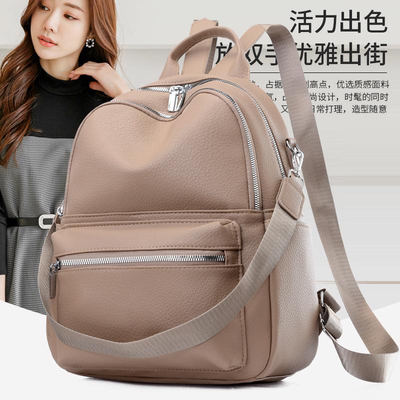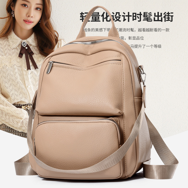 2024新型クロスボーダー多機能レディースリュックサックファッション純色pu革通勤カジュアルショルダーバッグ女性カバン
