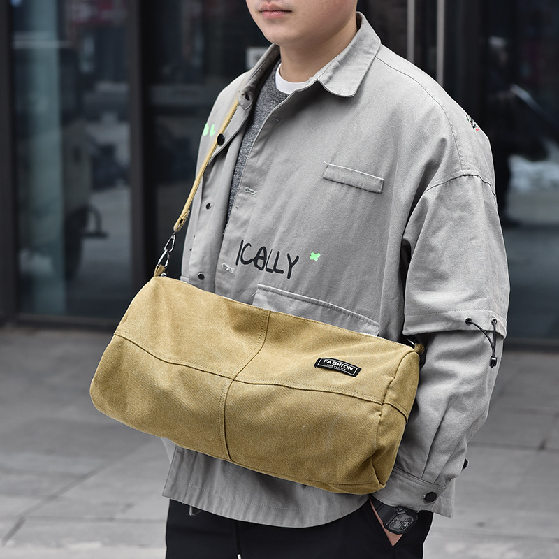 日系シンプルな斜め掛け男性バッグアウトドア旅行男性ズックシングルショルダーバッグ大容量スポーツレジャー円筒バッグ