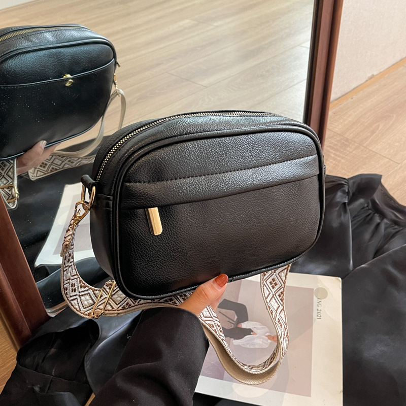 韓国版純色シンプルpuシングル肩脇下バッグ女性レトロ幅肩ひも斜め掛け女性バッグ多層カジュアルバッグ