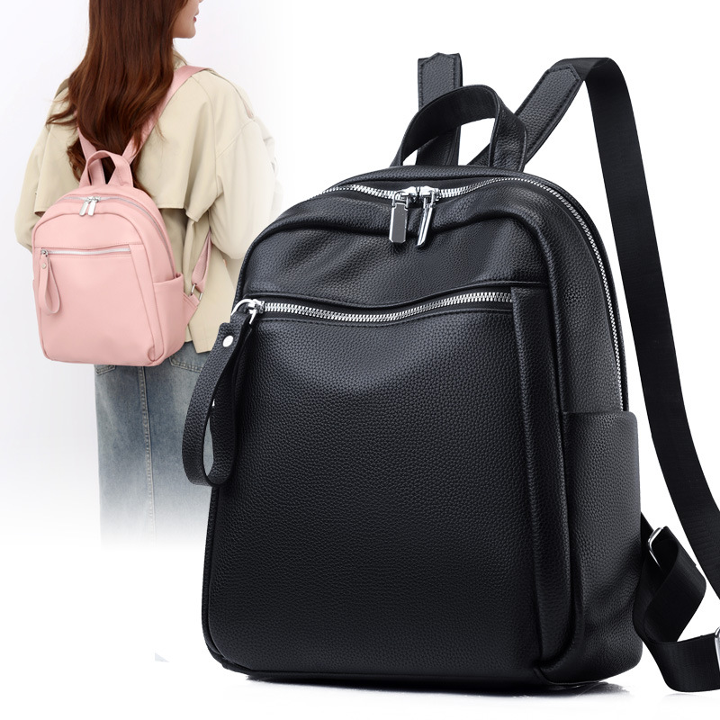 ファッション韓国版純色pu皮女性ランドセル多機能シングルショルダーバッグ大容量アウトドア旅行小リュックサック