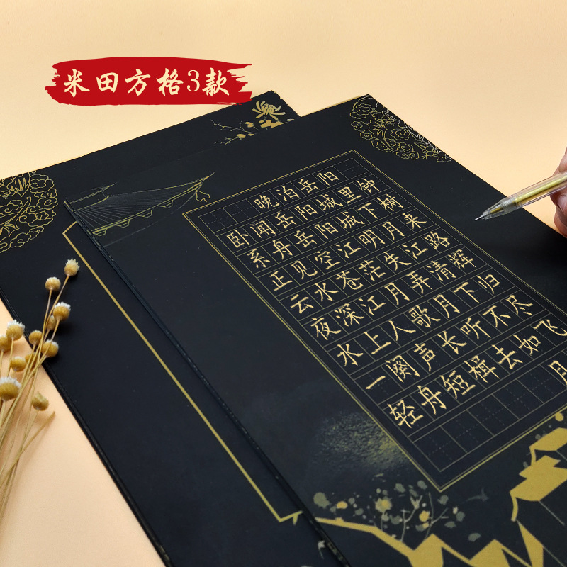 硬筆書道a 4作品紙中国風黒地試合古詩は言葉の字を書いて、字を厚くして、ロゴを貼ることができます。