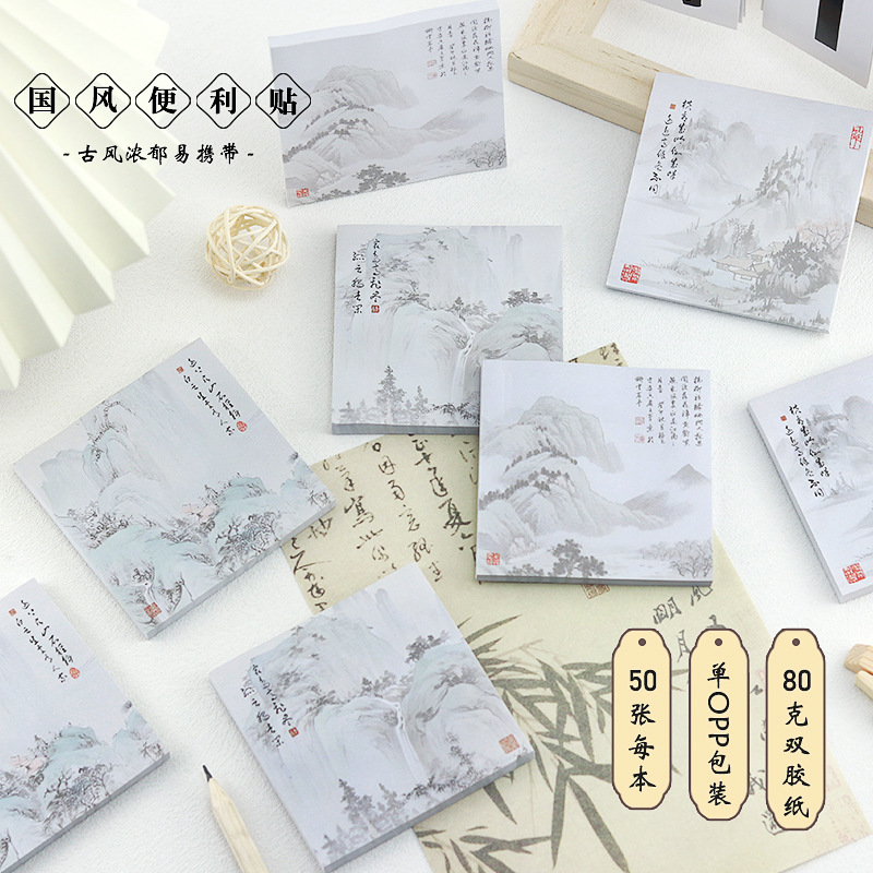 中国風の風景ポストイット、雲山の影、詩に便利、山を切り取ってメモに貼り付けることができます。