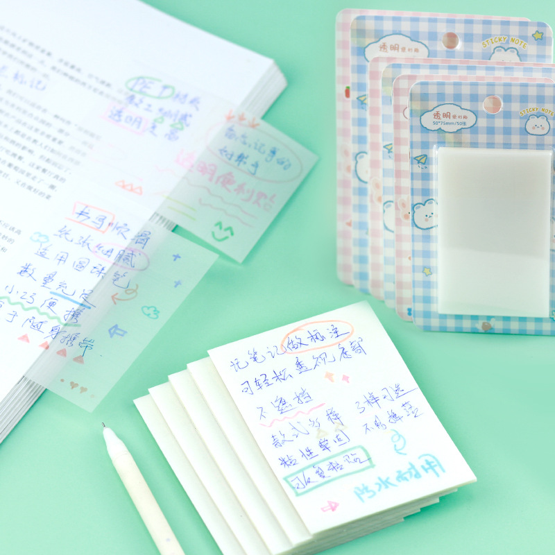 Ins風格子メモ200枚入透明ケース無粘り手帳質感素材便箋紙ロゴ