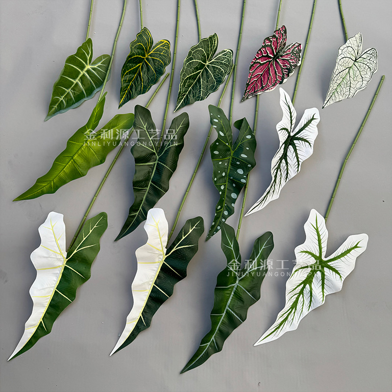 3dプリント単片緑植葉コンニャク葉白緑植物壁装飾テープ