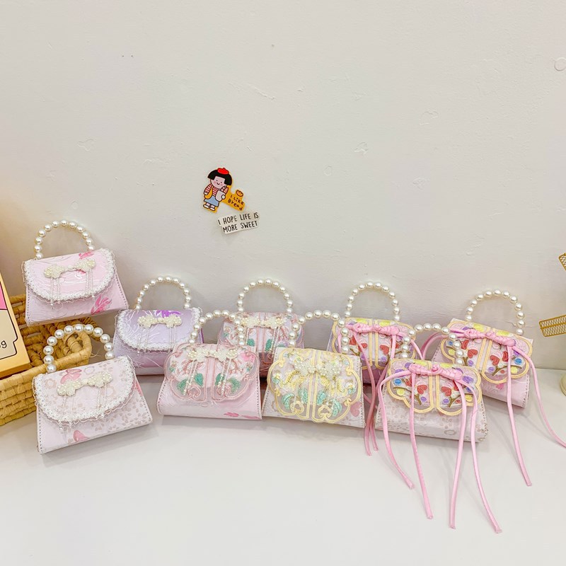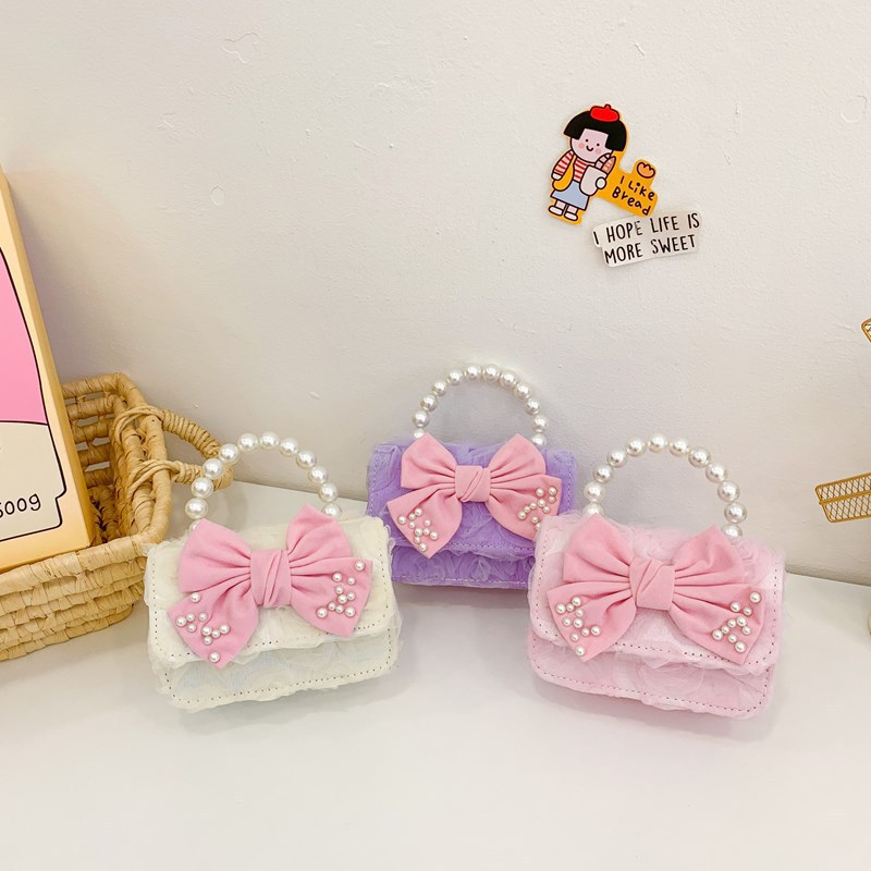 甘い蝶結びのミニ赤ちゃんの斜め掛けの小さい香風の子供のショルダーバッグの洋風の王女の真珠のハンドバッグのカバン