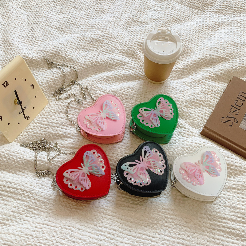 2024新型韓国版純色児童バッグかわいい蝶少女シングルバッグ甘い愛王女チェーンバッグ