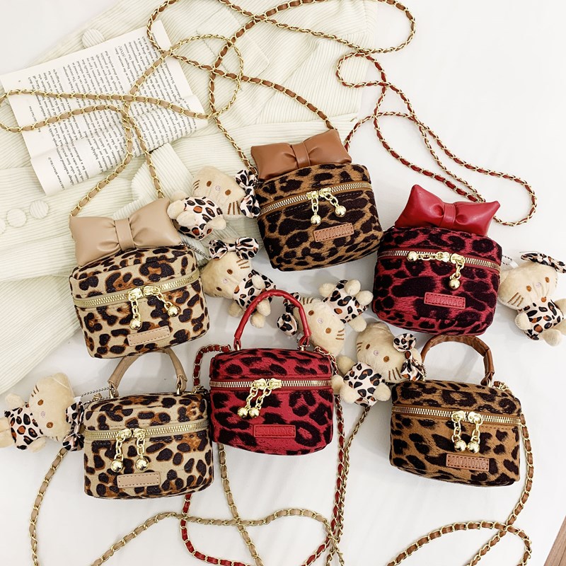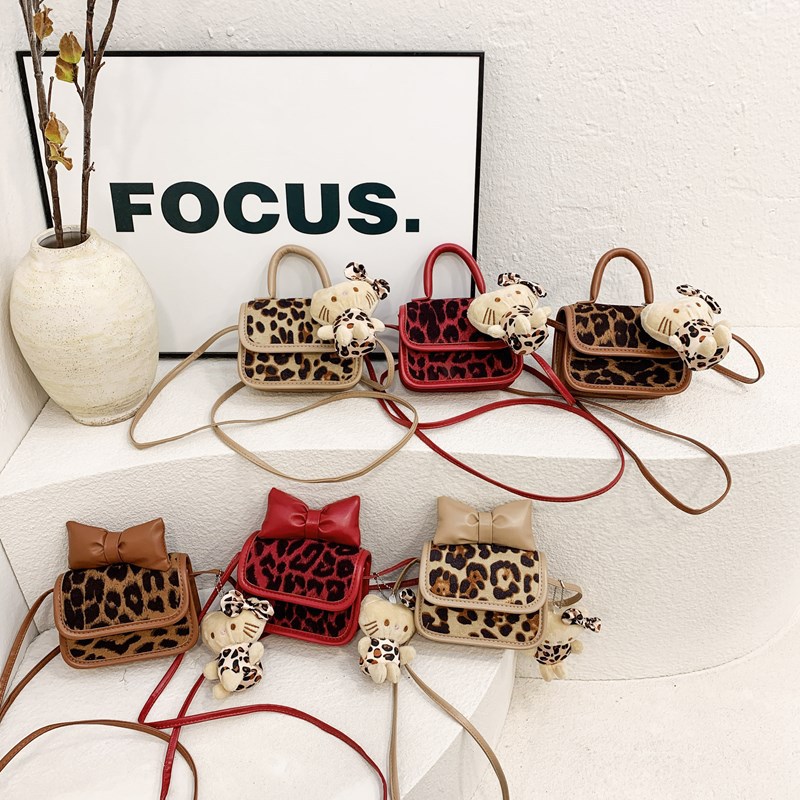 新型ヒョウ柄のミニバッグ韓国版男女子供用シングル肩小銭入れカバン可愛いプリンセス手提げ蝶結びカバン