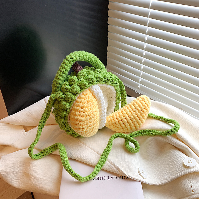 手作りの毛糸のかぎ針編みの男女の子供のショルダーバッグ