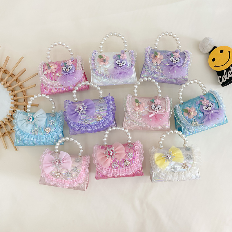 子供用カバン韓国版プリンセスパール手提げショルダーバッグ小花蝶結びアクセサリーカバン女の子斜め掛け小銭入れ