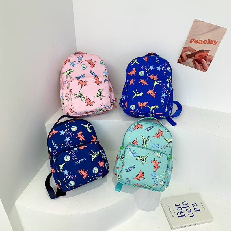 幼稚園の子供のランドセルの子供の軽いキャンバスの小さいリュックサックの漫画のかわいい恐竜の女の子のプリントのかばん
