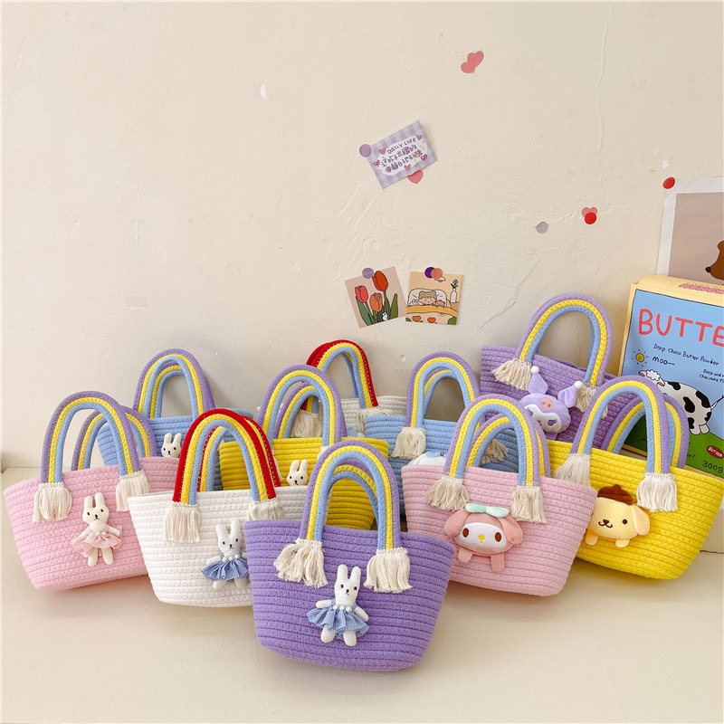 2023新型子供バッグ漫画赤ちゃんハンドバッグ草編みレインボーハンドバッグバスケットアクセサリー小銭入れ