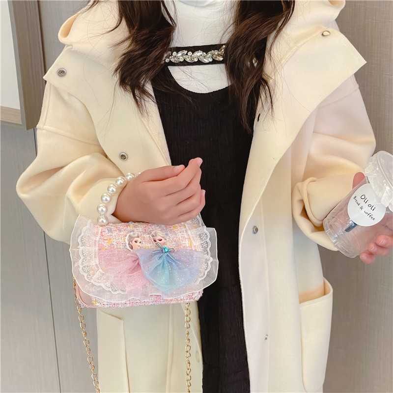 子供用バッグ2023新型韓国版かわいい真珠のハンドバッグの蝶結びの女の子の斜めショルダーバッグのお姫様の小香バッグの潮