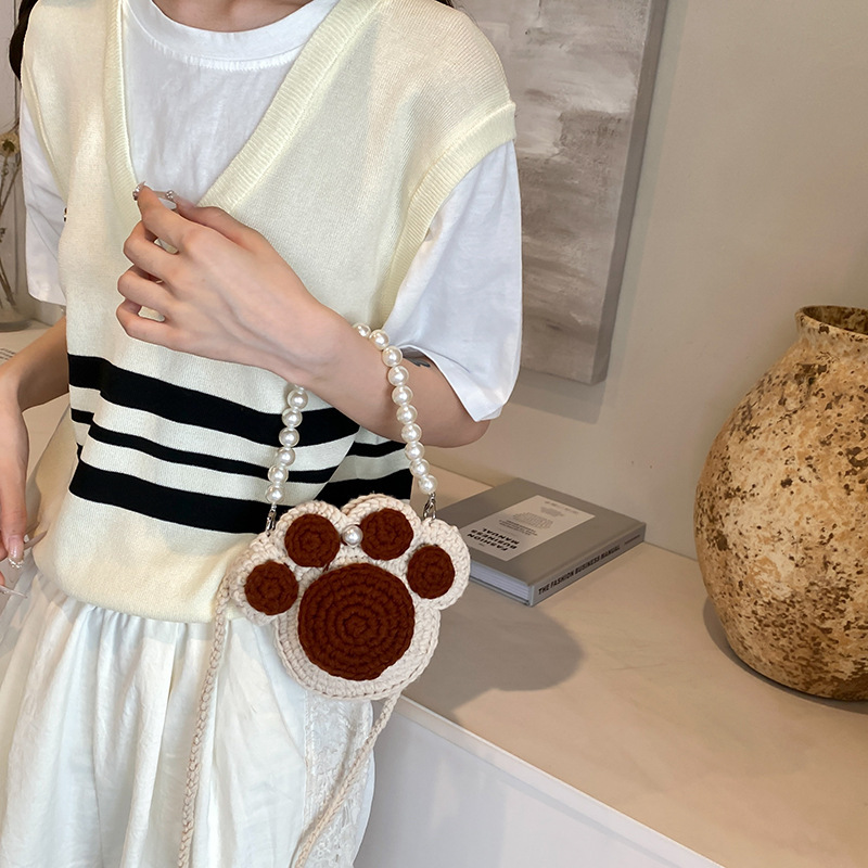2024秋冬子供カバンカバンカバン可爱いパールチェーンぬいぐるみワンショルダーバッグ新作かぎ织り猫爪小銭入れ