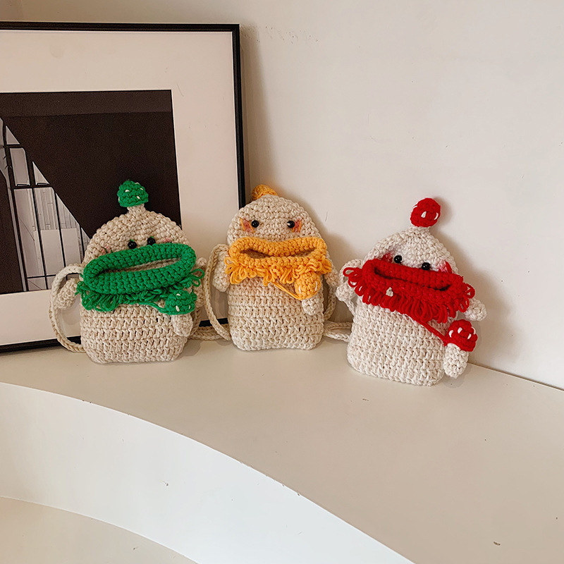 2024新型アニメかわいいバケツバッグ完成品毛糸鉤織児童バッグ醜いソーセージ口鍵携帯バッグ