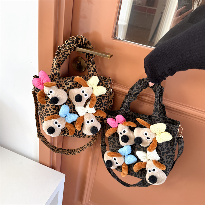 2024新型洋気豹紋児童バッグアニメ男女児童シングルバッグかわいい子犬の赤ちゃんがバケツバッグを持っている