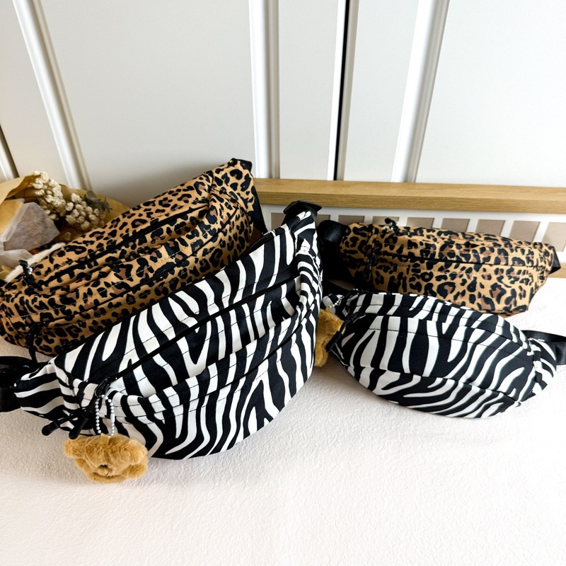 洋気2024新型ストラップ付き児童バッグ豹紋男女児童ウエストバッグ韓国版潮クールシマウマ紋帆布胸バッグ