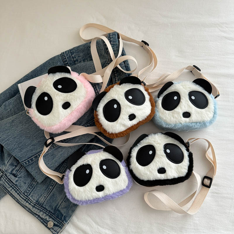2024アニメかわいいパンダの赤ちゃんのショルダーバッグの新しいぬいぐるみのショルダーバッグの屋外で子供のアクセサリーバッグを遊ぶ