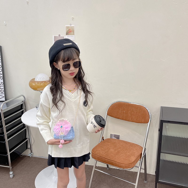 子供用カバン2022新作蝶結びお姫様カバン真珠ハンドバッグ可愛い女の子コンビネーションチェーン斜め掛けバッグ