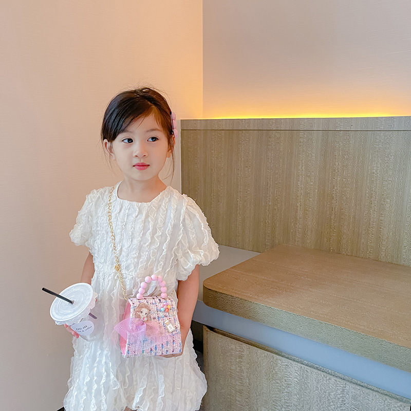 子供用バッグ2022ファッションワンショルダー漫画ビーズハンドバッグプリンセス蝶結び斜めがけバッグミニ小銭入れ
