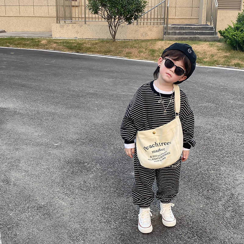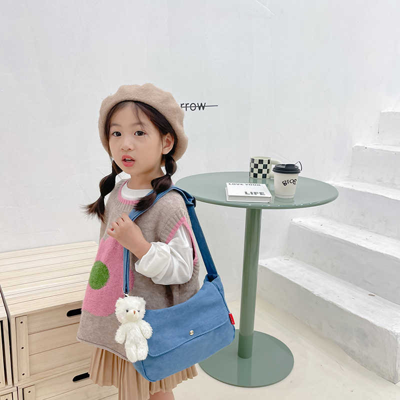 アルファベットの子供用レトロなキャンバスバッグ秋冬の斜め掛けバッグ女性韓国版カジュアルファッション子供用シングル肩斜め掛けカジュアルバッグ