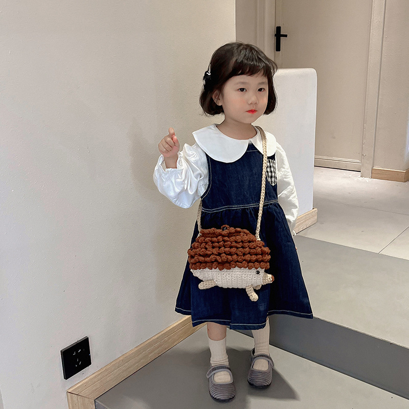 ネットレッド秋冬新作子供カバン可愛いハリネズミ手作り毛糸編みカバン完成品男女子供斜め掛けカバン