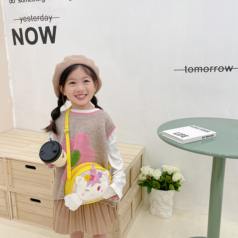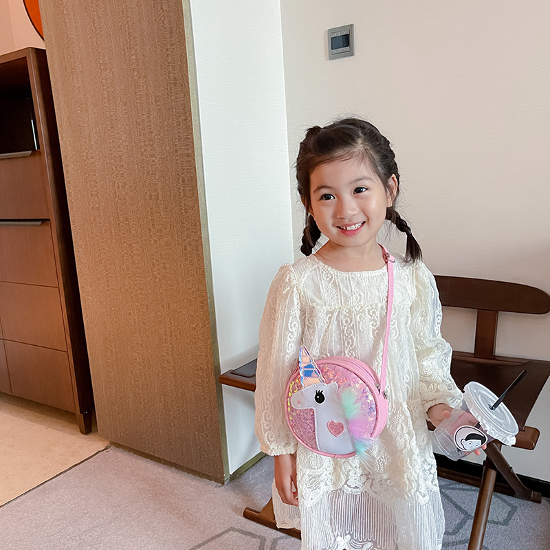 2022新型秋子供レーザーバッグかわいいユニコーンスパンコール斜めショルダーバッグ洋風女の子シングル肩アクセサリーバッグ