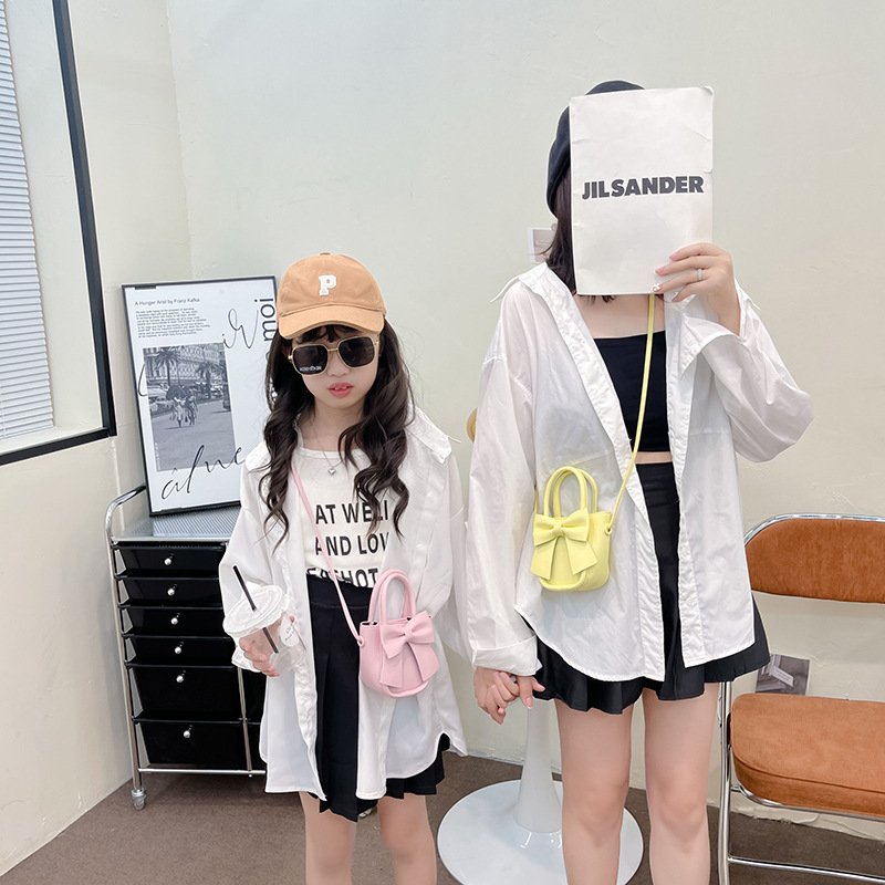2022新型韓国版子供カバン洋気女の子シングル肩斜めショルダー小銭入れ洋気蝶結び親子手提げかばん