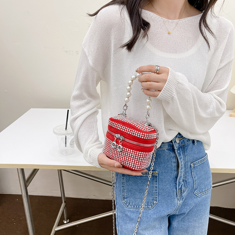 韓国版の明るいドリルの女の子のカバン2022早秋の新型の真珠のハンドバッグのファッションのチェーンの斜めのショルダーバッグの流行のミニカバン