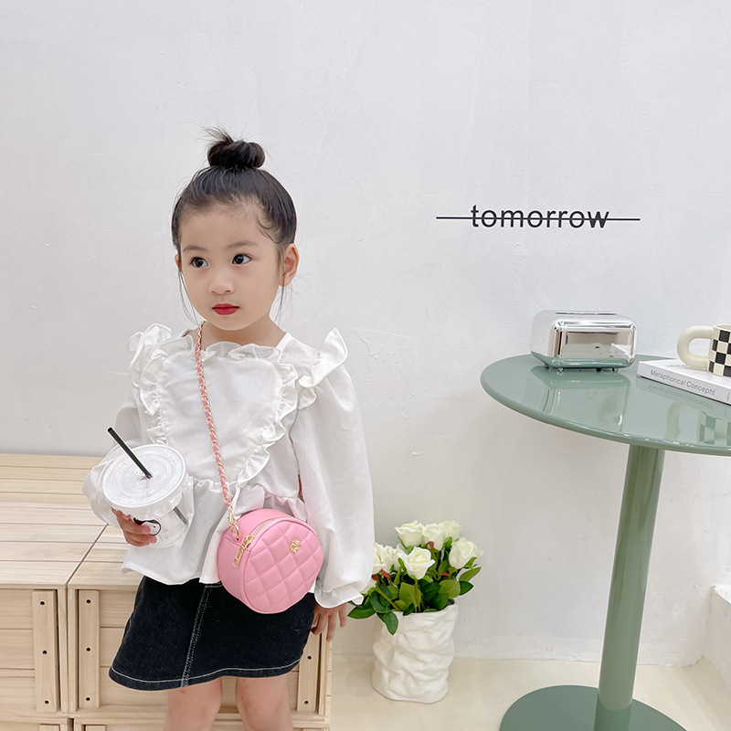 子供の斜めショルダーバッグ2022秋の新型チェーンの小さい丸い包みの菱の格の刺繍の線の0財布の女の子の百合の装飾のカバン