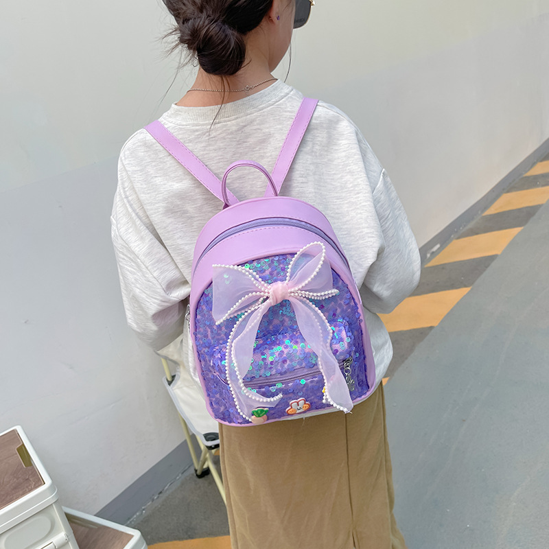 卸売り子供のミニかばんファッションpuスパンコール蝶結びバックパックかわいい女の子が旅行に出かけるランドセル
