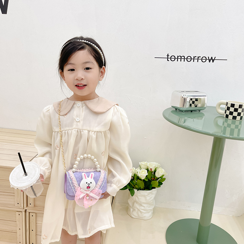 2022韓国版子供用バッグ女性ファッションかわいいウサギシングル肩斜め掛けチェーンバッグ真珠手提げ女の子用バッグ