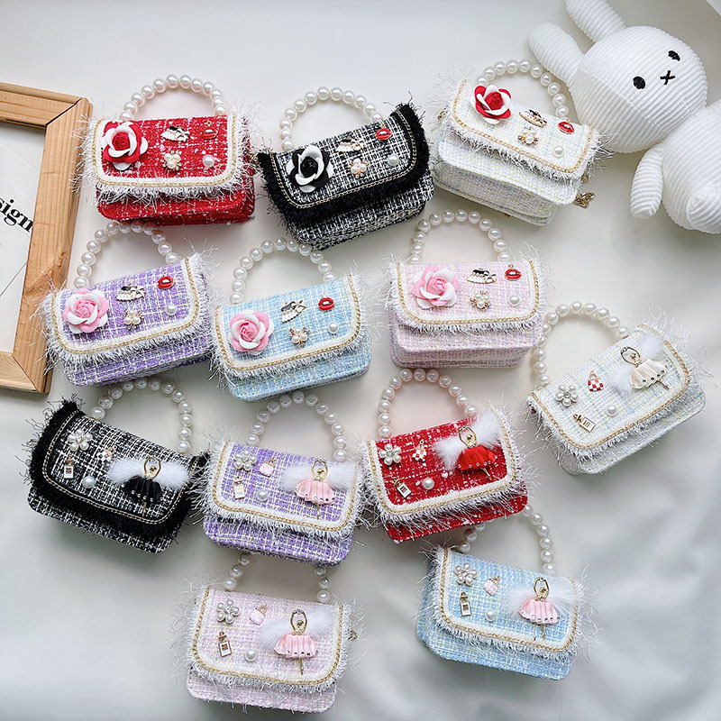 2022新型プリンセスハンドバッグ韓国版小香風子供カバンビーズ