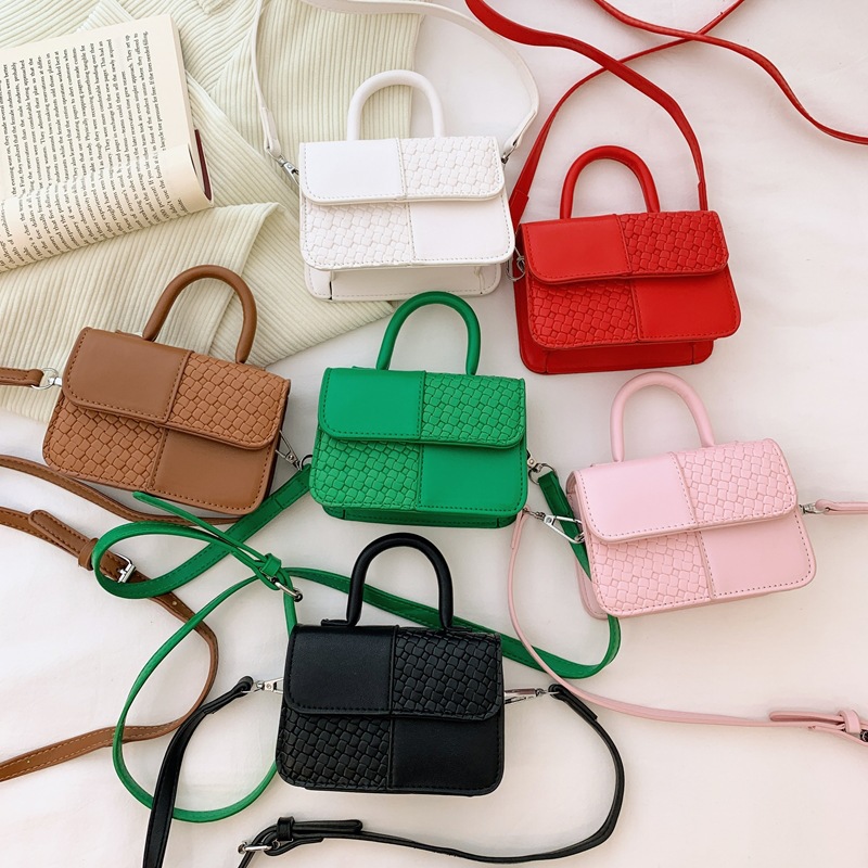 韓国版の純色の新型ミニ外国貿易の子供の小さい方は男女の子供のショルダーバッグの洋風を包んで子供のハンドバッグをつなぎ合わせます。