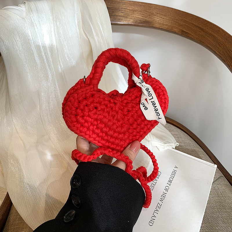 国境を越えた新しい愛の子供バッグかわいい女の子ハート型のニットバッグ