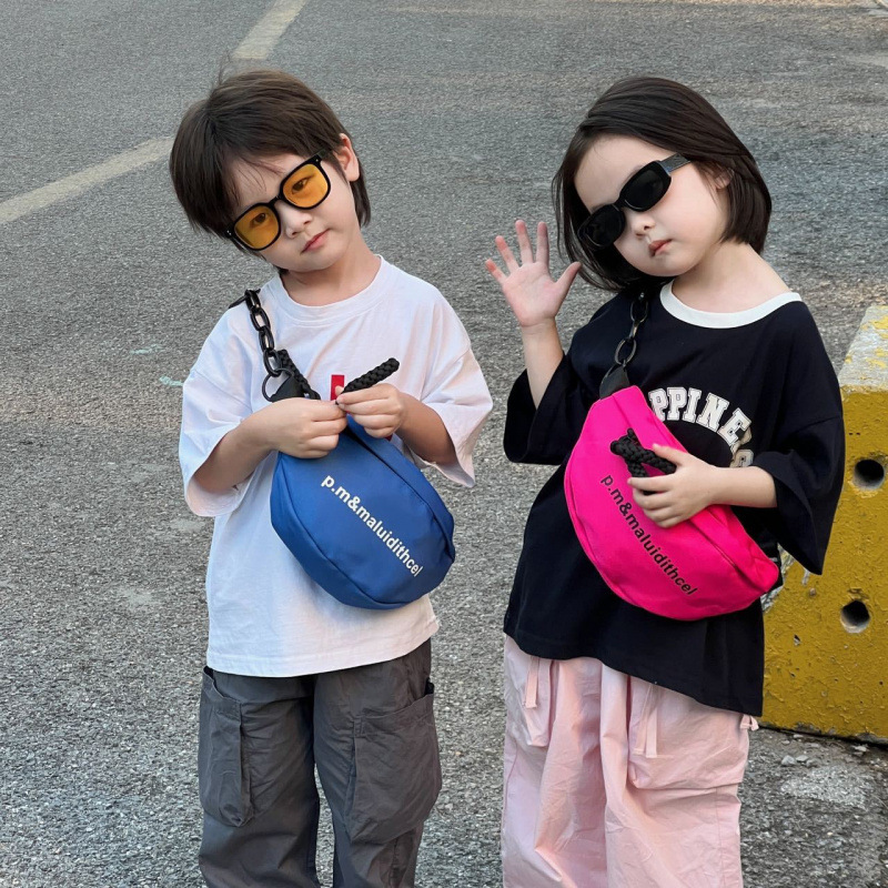 潮酷2024新型外国貿易児童バッグ男女児童財布韓国版ファッション衝突色洋気アルファベット子供胸バッグ