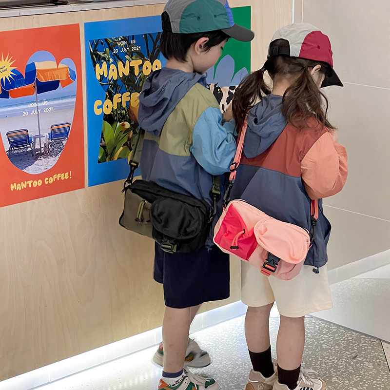 韓国版2024新型衝突色児童バッグ男女児童シングルバッグシンプルでカジュアルな子供のショルダーバッグ
