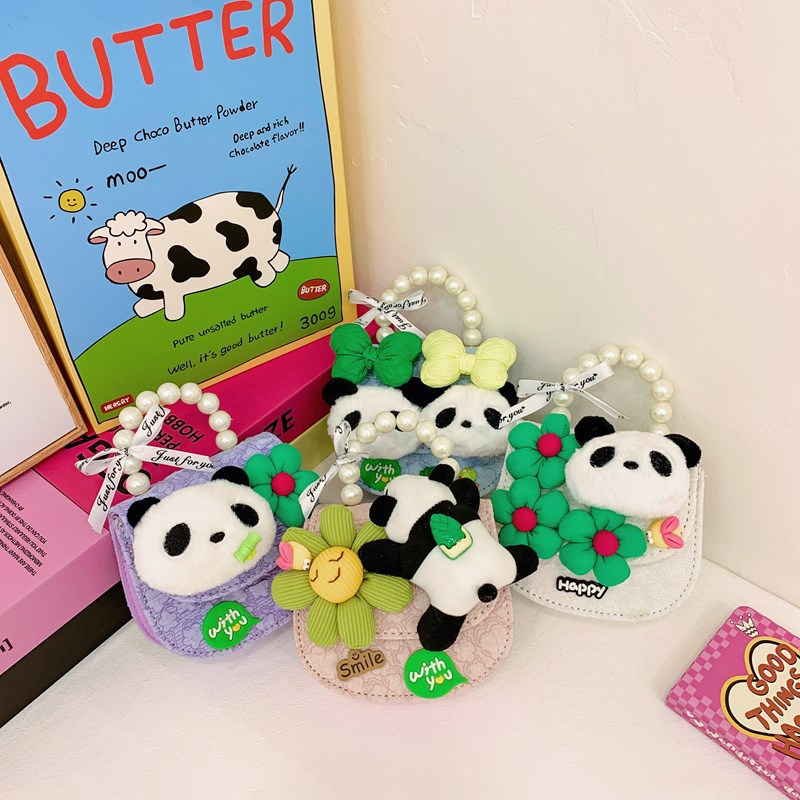 漫画の男女の子供のショルダーバッグのかわいいパンダの蝶結びの赤ちゃんの斜めのショルダーバッグの2024の新型のチェーンの子供のカバン