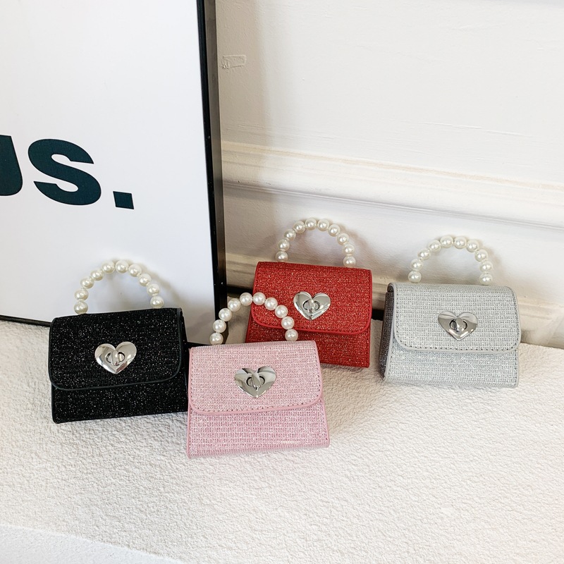 2024新型チェーンの子供の斜めのショルダーバッグの愛のロックの子供の包みの洋気の真珠の手提げの男女の子供の小さい方の包み