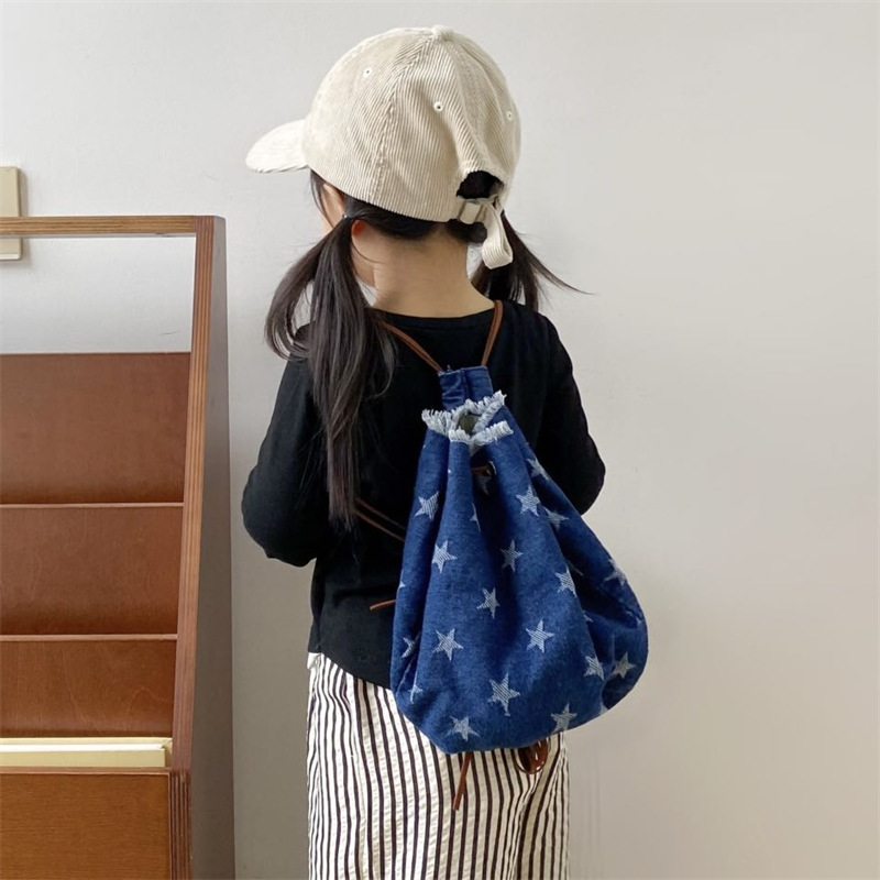 韓国系のレトロなデニムの子供のカバンは個性的です。