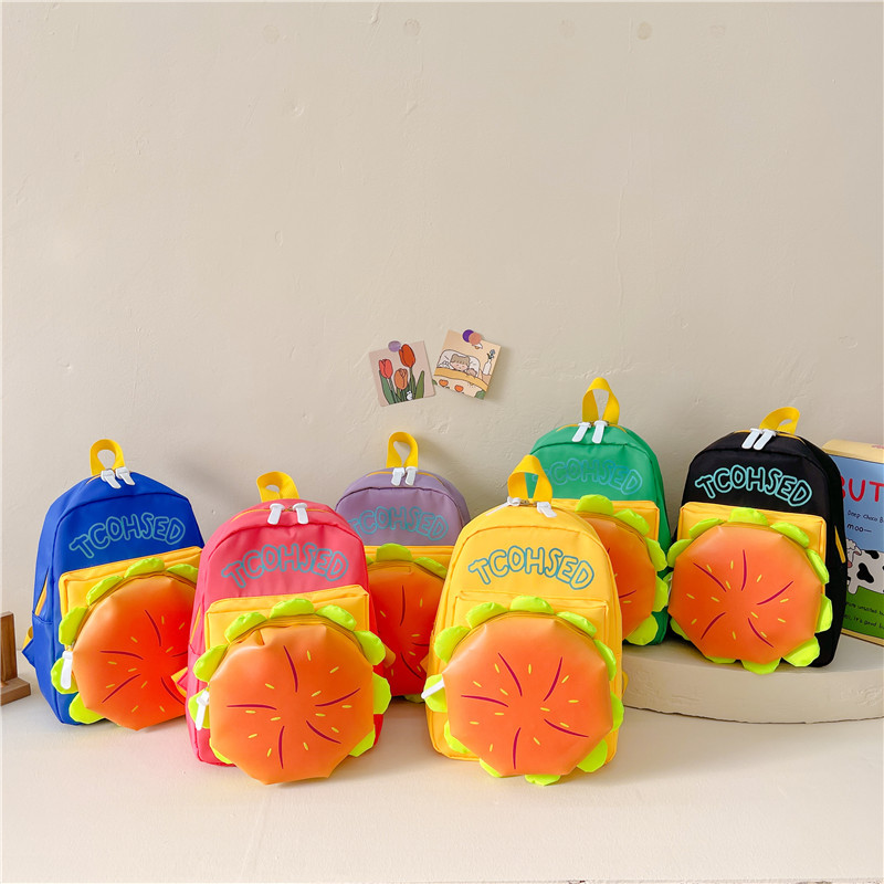 新型の男女の子供は色の軽いキャンバスの小さいリュックサックの子供にぶつかって幼稚園の子供の漫画のハンバーグのリュックサックを包みます。