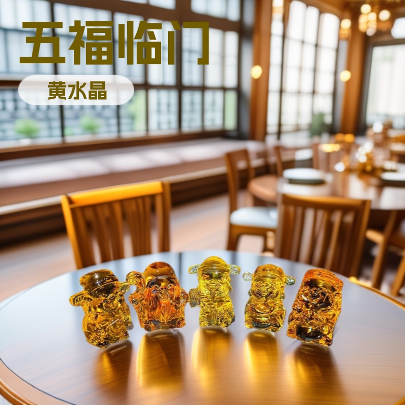 凌韻水晶黄水晶福禄寿喜財五路家庭装飾品五福臨門