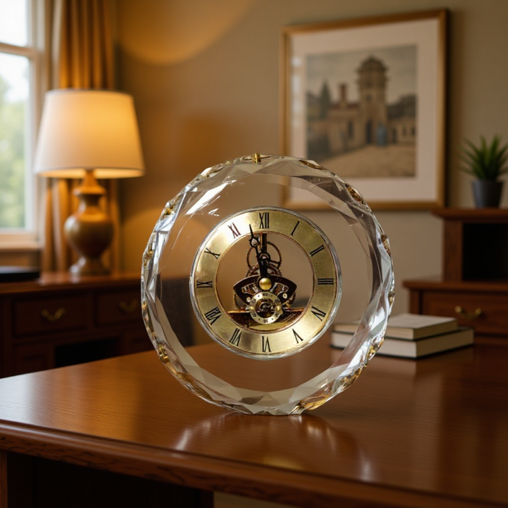 凌韻水晶時計現代シンプル加LOG軽贅沢創意水晶機械台鐘家庭事務飾り物