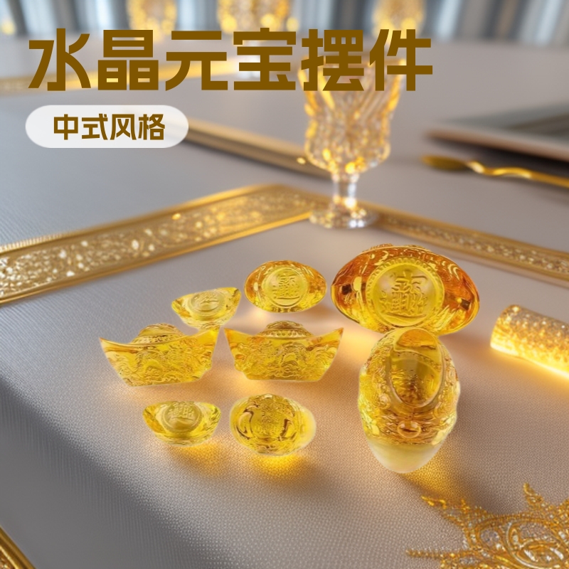 凌韻瑠璃金条家居装飾品納福開業黄水晶金条金元宝聚宝盆置物