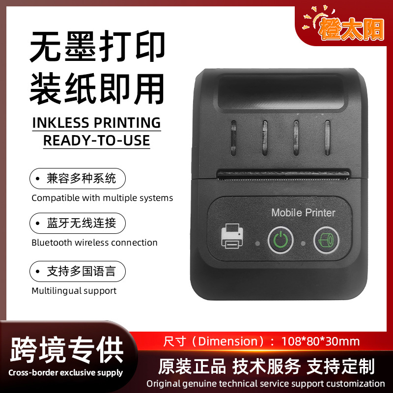 クロスボーダーミニポータブルサーマルレシートプリンターBluetoothテイクアウトレジレシートインクレスバーコードプリンター