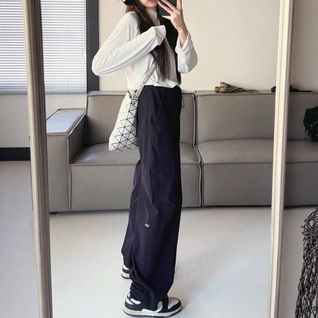 Alo アメリカンレターウェビングダブルウエストパラシュートオーバーオールレディースルーズスリミング多用途スポーツ速乾パンツ
