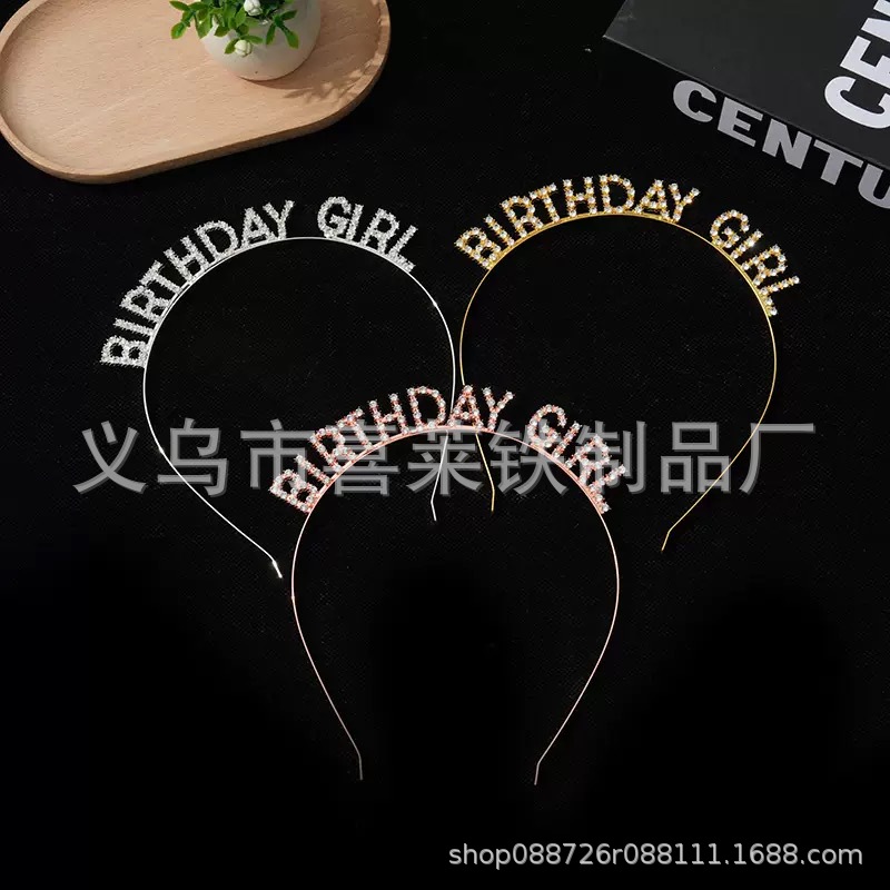 誕生日パーティーセット誕生日ガールヘッドバンドゴールドパウダーショルダーストラップ女の子ラインストーン装飾エチケットヘッドバンド