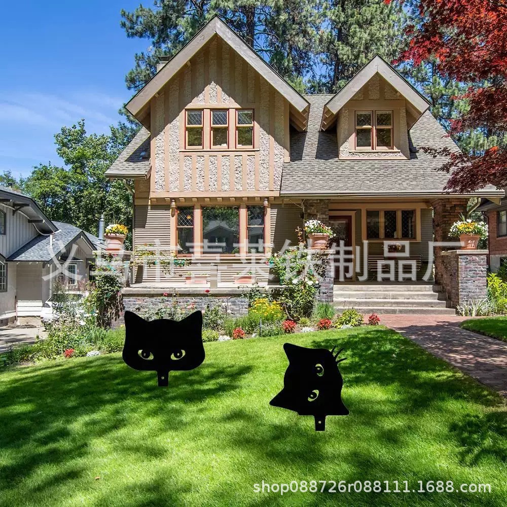 独立した新しい黒の覗き見猫のロゴ芝生庭の地面の屋外装飾