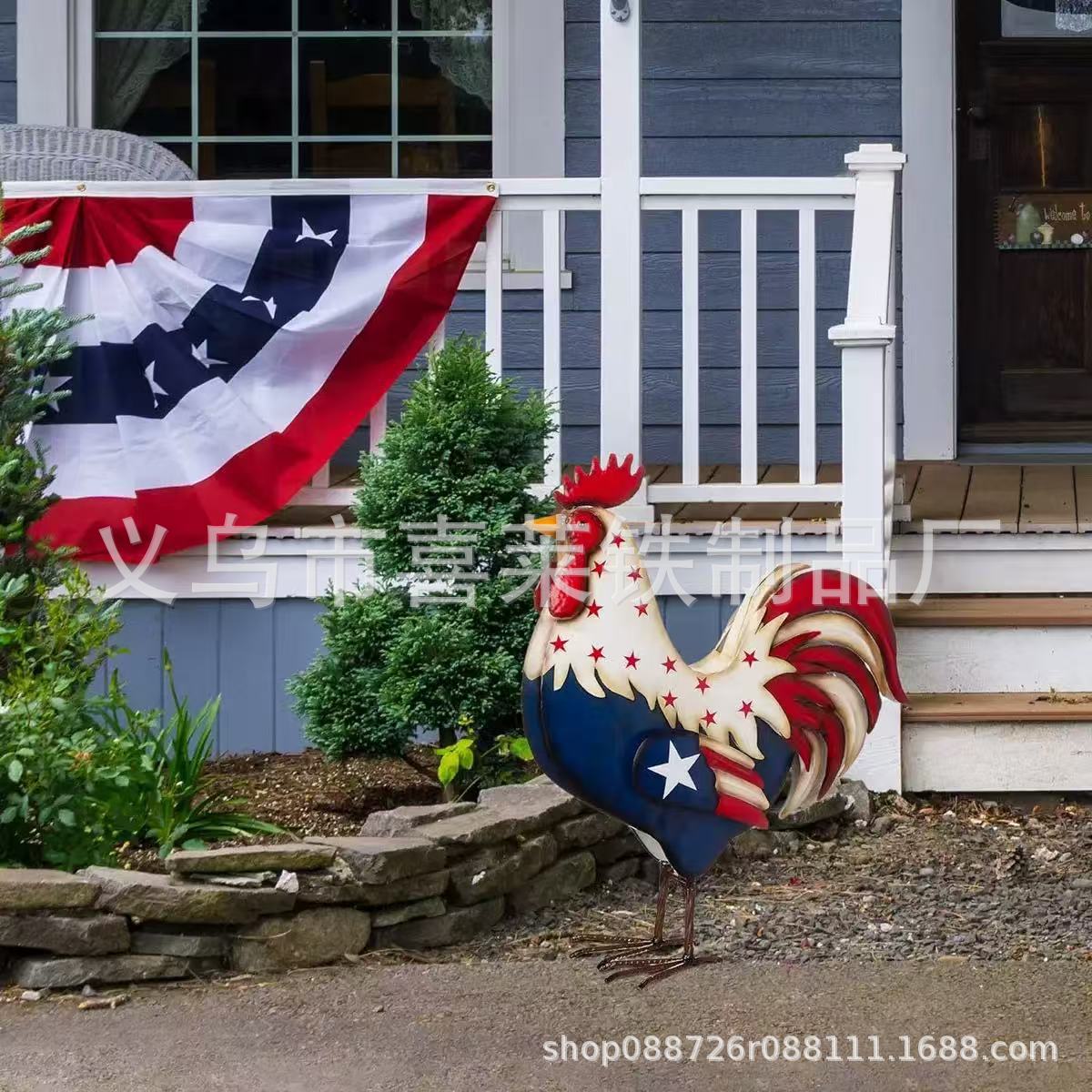 金属製の愛国的なオンドリ像独立記念日のオンドリ屋外フラット装飾地面装飾品